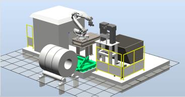 拆捆带机器人将人工智能、视觉识别、工业控制和工程机械等技术进行充分融合,实现钢卷捆带识别和精确定位,钢卷带尾头的识别及控制地滚调整钢卷角度。高效拆剪机头具备将捆带从钢卷表面铲起,然后剪切,并将拆除后的捆带夹送至捆带收集装置,由捆带收集装置卷取压紧成团状,滑入收集斗或由皮带运输机输送至收集斗。拆捆带机器人简易高效地实现自动检测、拆除及收集捆带的功能,不仅能够降低劳动强度,提高作业效率,提高作业人员的安全系数,而且具有较高的可靠性。